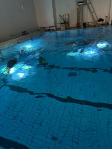Met dank aan Sublub, die ons voorzien had van een aantal gerenommeerde duiklampen en met een flink aantal AliExpres en Amazon lampen stond DTN dan ook deze zondag aan de rand van het zwembad.